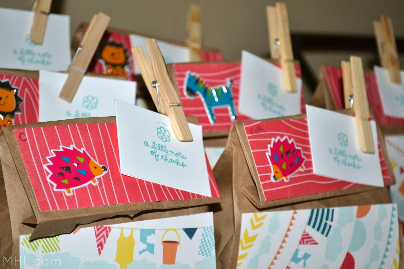 I made goodie bags for our friends and family to take home. Inside I included a bag of popcorn, some butter free for those who can't have dairy, strawberry banana fruit leather and granola bars.